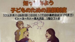 「知ってみよう 子どものための里親制度」がイトーヨーカドー南大沢で10/23~26開催